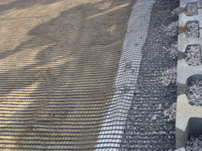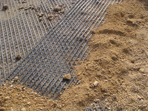 GEOGRID are Geosynthetic formed by a regular network of integrally connected elements with apertures greater than 1/4" to allow interlocking with surrounding soil, rock, earth and other surrounding materials to function primarily as reinforcement.